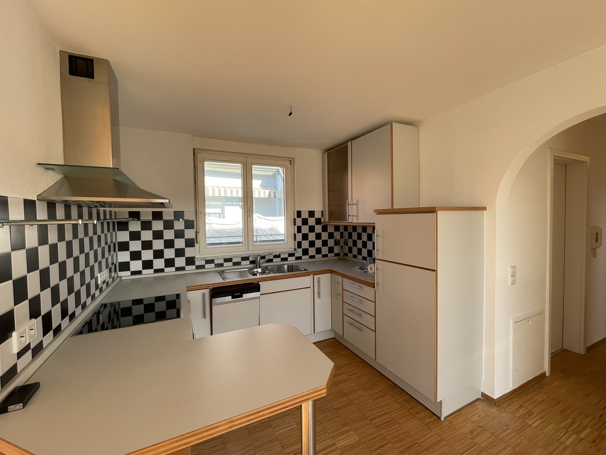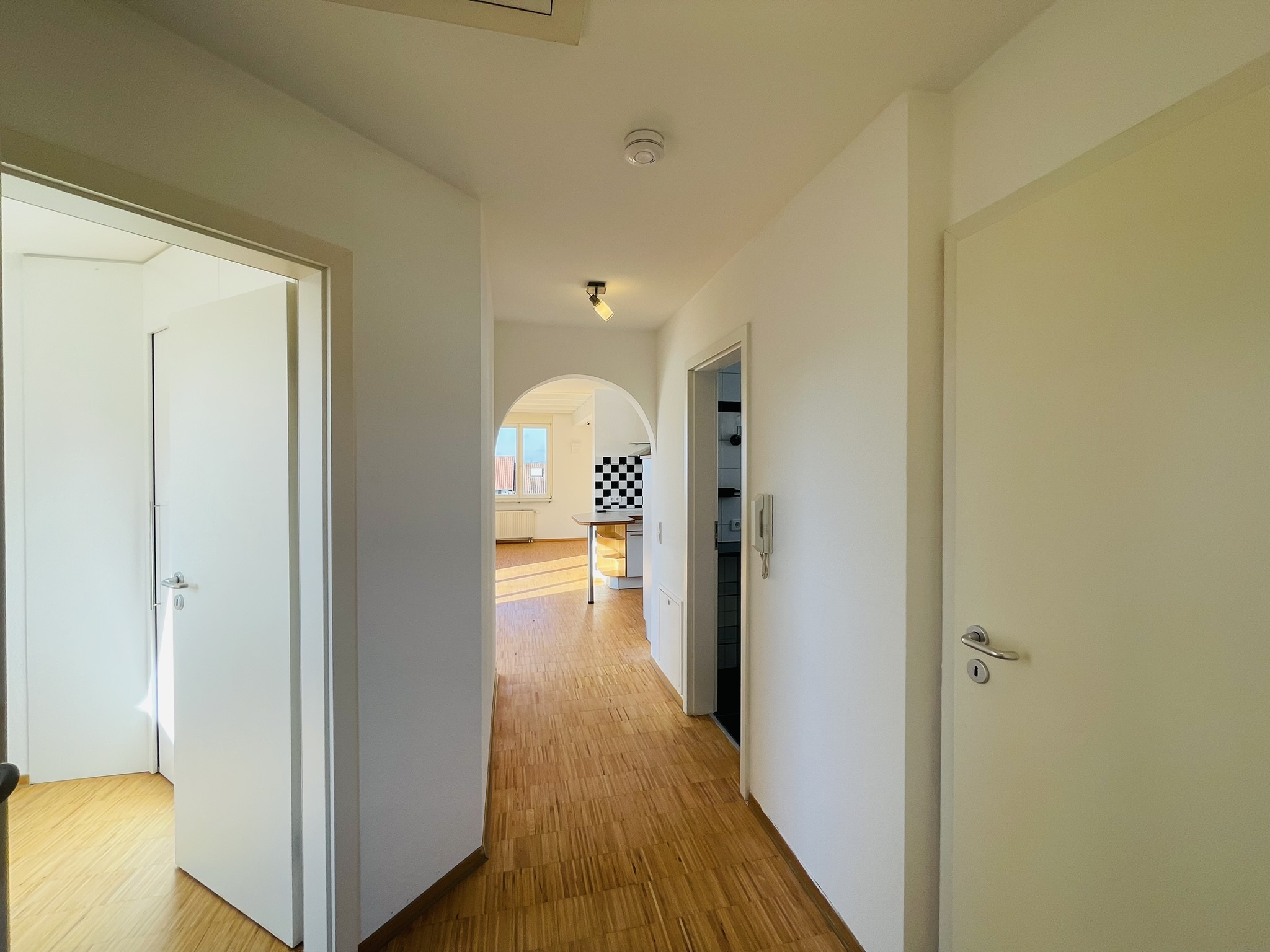 Der offen gestaltete Wohn- und Essbereich bildet das Herzstück der Wohnung und bietet Zugang zu einem großzügigen Dachbalkon – ideal für entspannte Stunden im Freien. Die Küche ist funktional integriert und bietet alles, was man zum Kochen braucht.