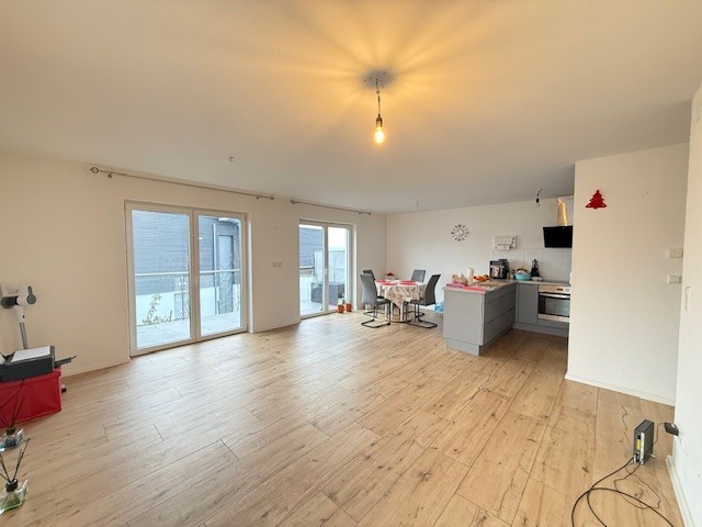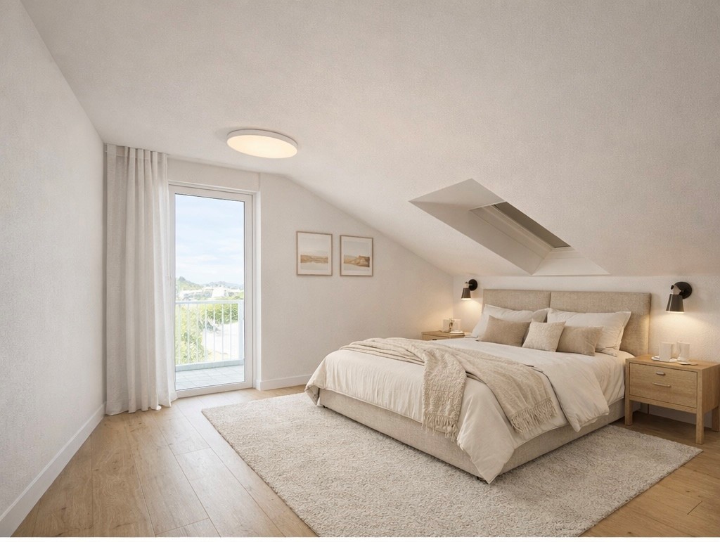 Die durchdachte Raumaufteilung umfasst fünf gut geschnittene Zimmer, zwei moderne Badezimmer sowie einen Balkon, der zum Entspannen einlädt. Große Fenster sorgen in allen Wohnräumen für viel Tageslicht und eine freundliche Wohnatmosphäre.