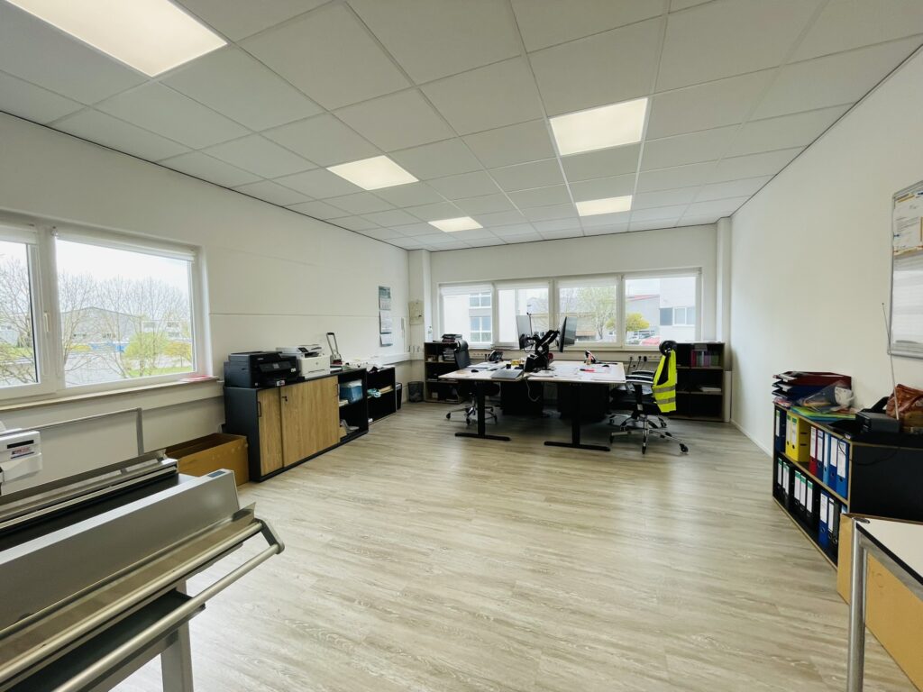 Das Umfeld ist geprägt von einem gewachsenen Gewerbemix aus Dienstleistern, Handwerksbetrieben und kleineren Produktionsunternehmen – eine angenehme und professionelle Arbeitsumgebung.